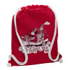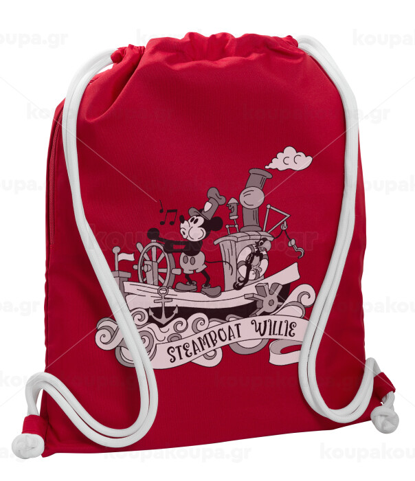 Mickey steamboat, Backpack pouch GYMBAG Red, with pocket (40x48cm) & thick cords