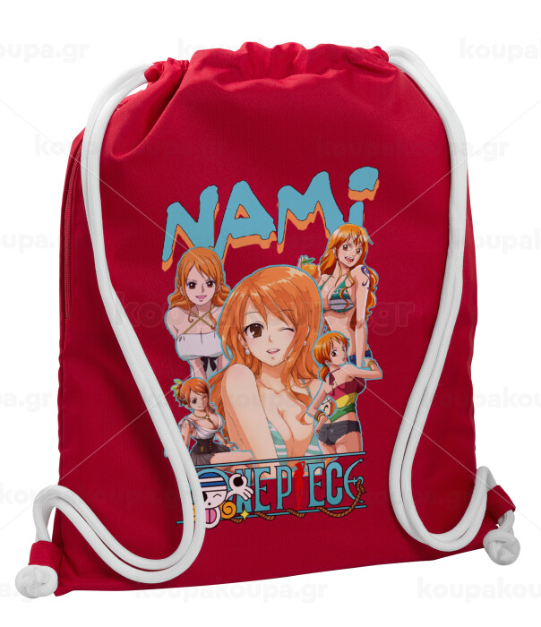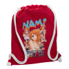 Nami One Piece, Backpack pouch GYMBAG Red, with pocket (40x48cm) & thick cords