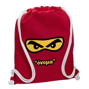 Ninja Eyes με όνομα, Backpack pouch GYMBAG Red, with pocket (40x48cm) & thick cords
