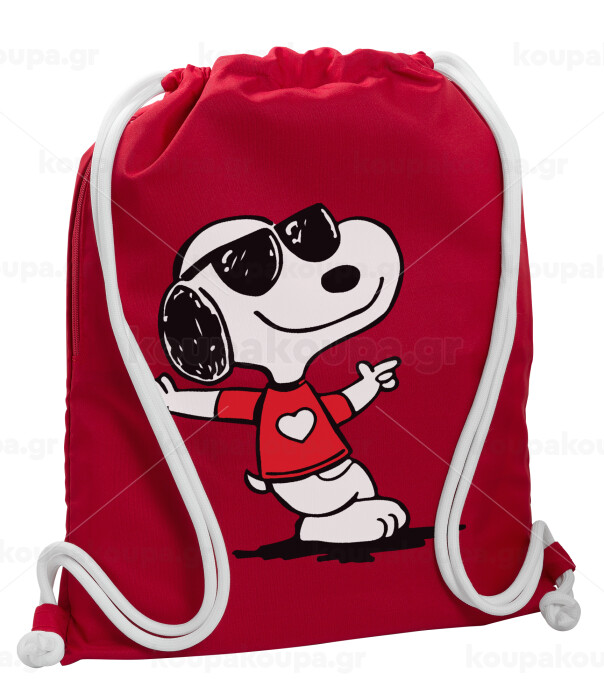 Snoopy καρδούλα, Backpack pouch GYMBAG Red, with pocket (40x48cm) & thick cords