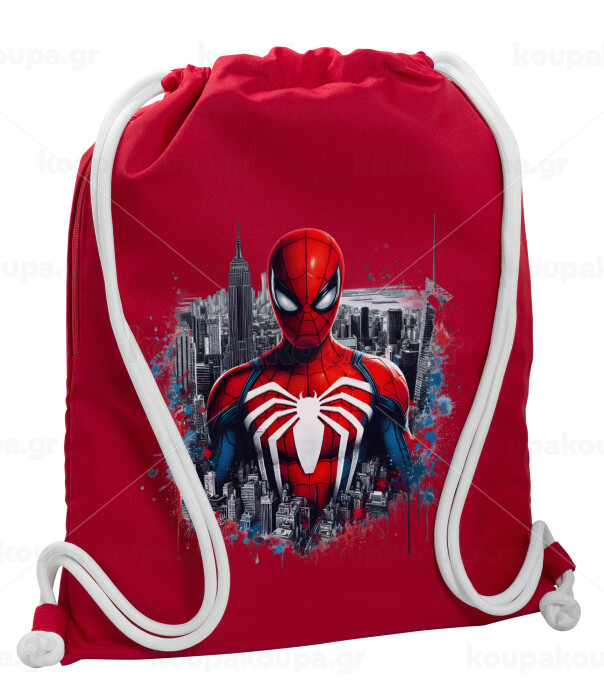 Spiderman City, Backpack pouch GYMBAG Red, with pocket (40x48cm) & thick cords