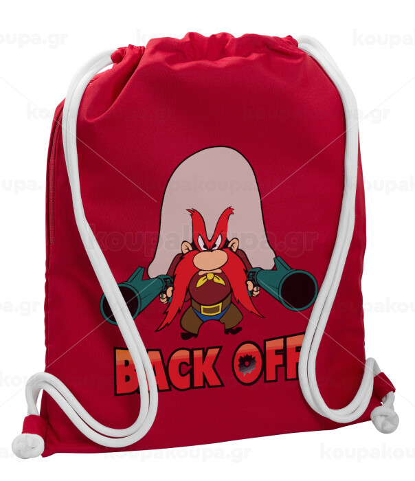 Yosemite Sam Back OFF, Backpack pouch GYMBAG Red, with pocket (40x48cm) & thick cords