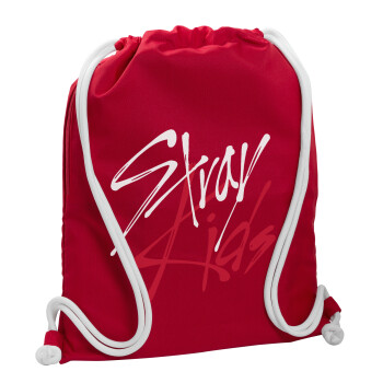 Stray Kids, Backpack pouch GYMBAG Red, with pocket (40x48cm) & thick cords