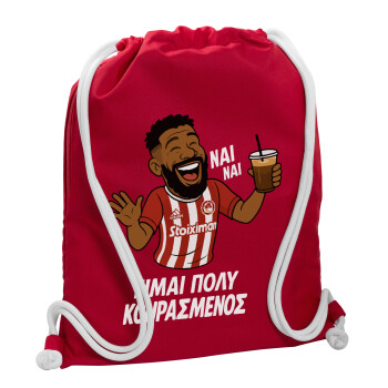 Ροντινέι, "ΠΟΛΥ ΚΟΥΡΑΣΜΕΝΟΣ", Backpack pouch GYMBAG Red, with pocket (40x48cm) & thick cords
