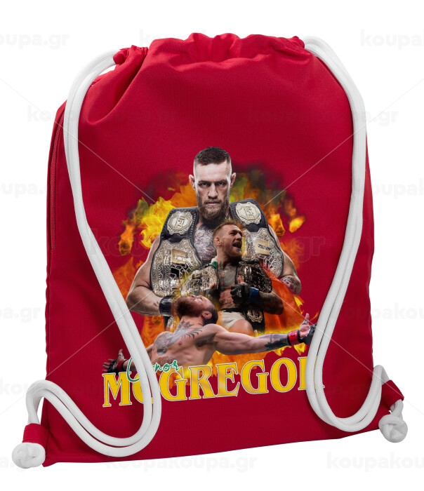 Conor McGregor Notorious, Backpack pouch GYMBAG Red, with pocket (40x48cm) & thick cords