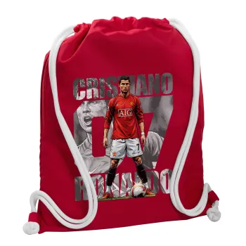 Cristiano Ronaldo (Κριστιάνο Ρονάλντο), Backpack pouch GYMBAG Red, with pocket (40x48cm) & thick cords