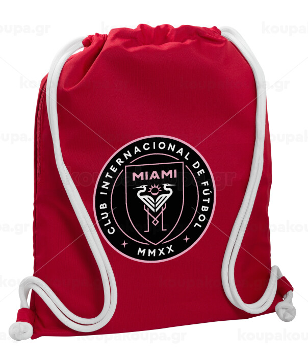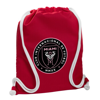 Inter Miami CF, Backpack pouch GYMBAG Red, with pocket (40x48cm) & thick cords