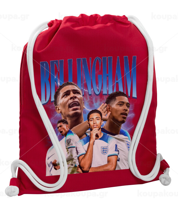 Jude Bellingham, Backpack pouch GYMBAG Red, with pocket (40x48cm) & thick cords