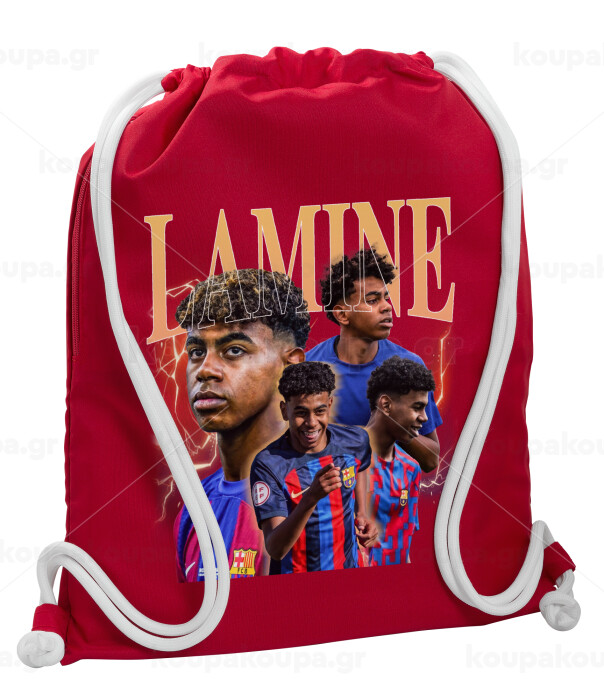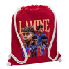 lamine yamal FCB, Backpack pouch GYMBAG Red, with pocket (40x48cm) & thick cords