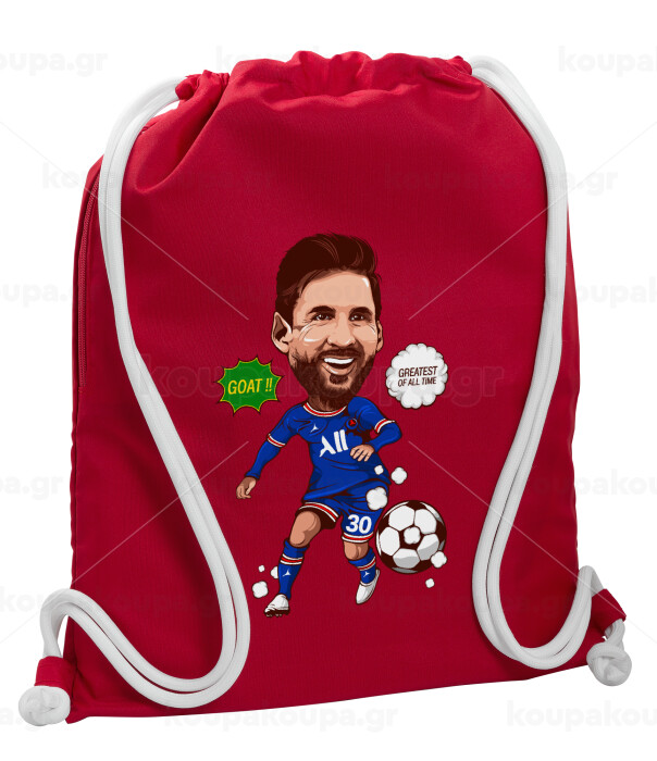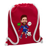 Lionel Messi drawing, Backpack pouch GYMBAG Red, with pocket (40x48cm) & thick cords