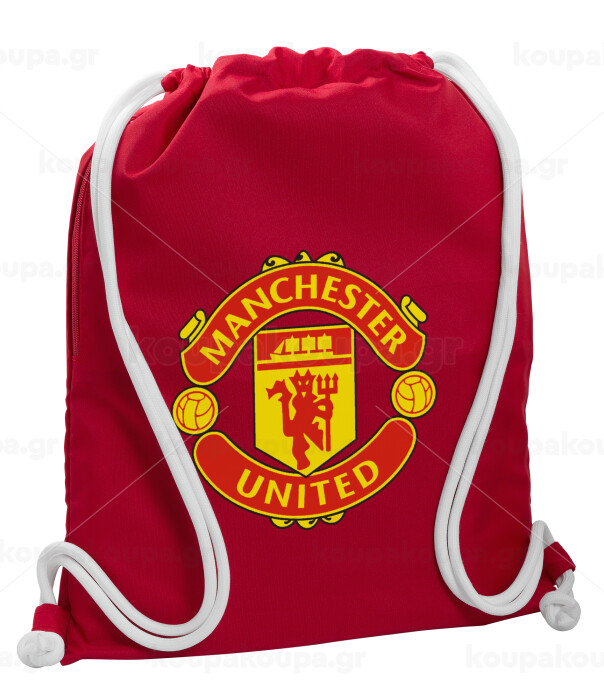 Manchester United F.C., Backpack pouch GYMBAG Red, with pocket (40x48cm) & thick cords