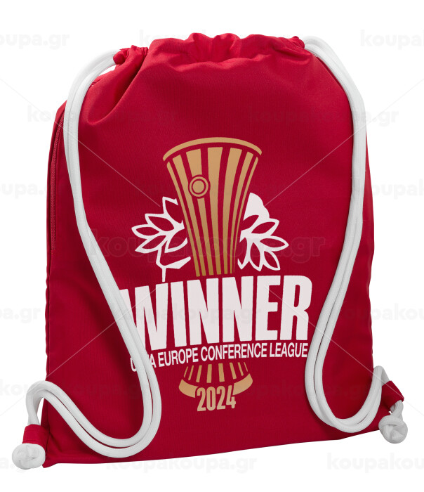 Europa Conference League WINNER, Backpack pouch GYMBAG Red, with pocket (40x48cm) & thick cords