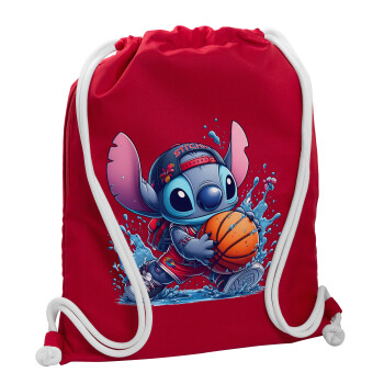Stitch Basketball, Backpack pouch GYMBAG Red, with pocket (40x48cm) & thick cords