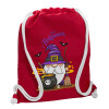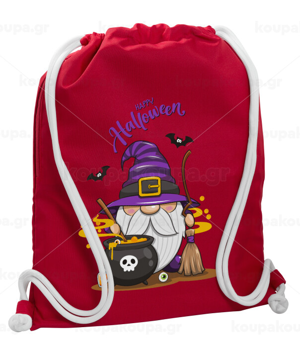 Happy Halloween (Χαλοουίν), Backpack pouch GYMBAG Red, with pocket (40x48cm) & thick cords