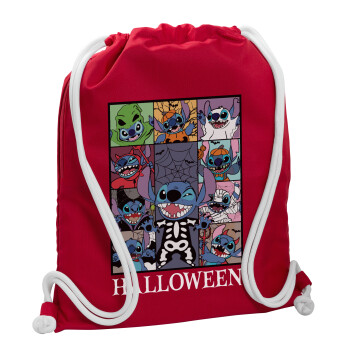Stitch Halloween, Backpack pouch GYMBAG Red, with pocket (40x48cm) & thick cords