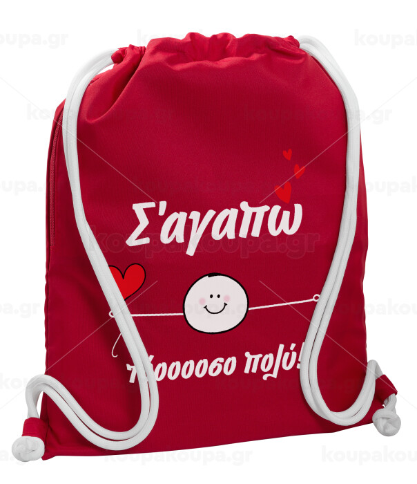 Σ΄αγαπώ τόοοοσο πολύ (Αγόρι)!!!, Backpack pouch GYMBAG Red, with pocket (40x48cm) & thick cords