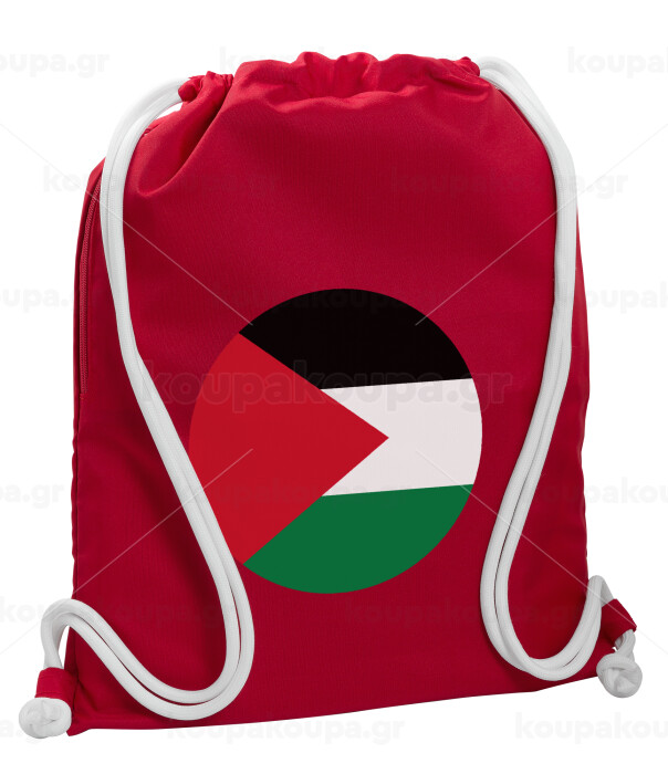 Palestine Flag, Backpack pouch GYMBAG Red, with pocket (40x48cm) & thick cords