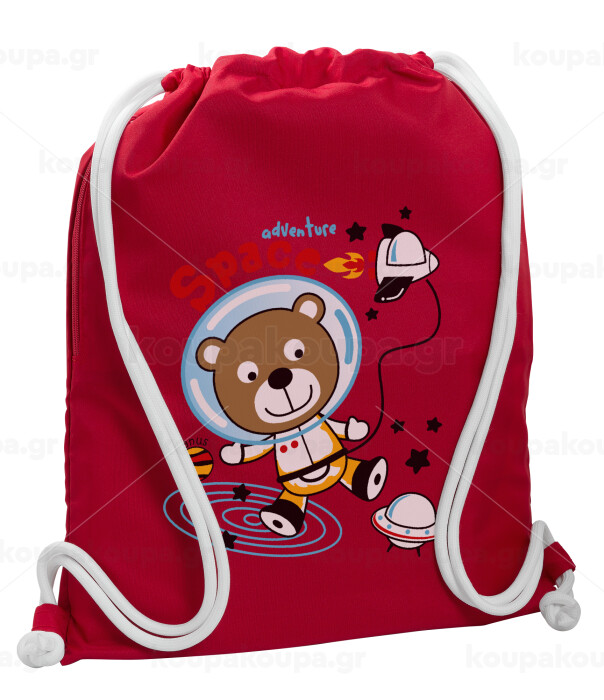 Kids Space, Backpack pouch GYMBAG Red, with pocket (40x48cm) & thick cords