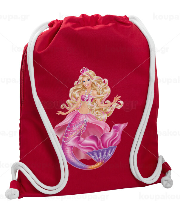 Barbie mermaid , Backpack pouch GYMBAG Red, with pocket (40x48cm) & thick cords