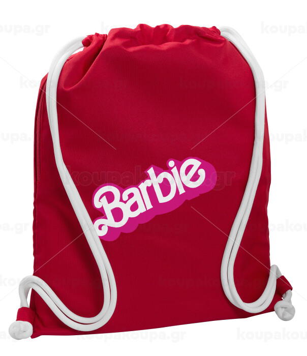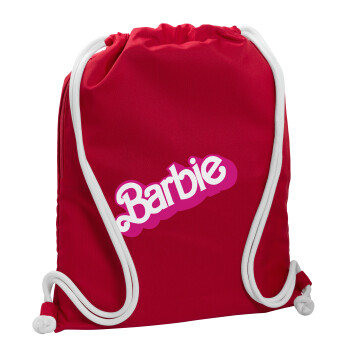 Barbie, Backpack pouch GYMBAG Red, with pocket (40x48cm) & thick cords