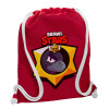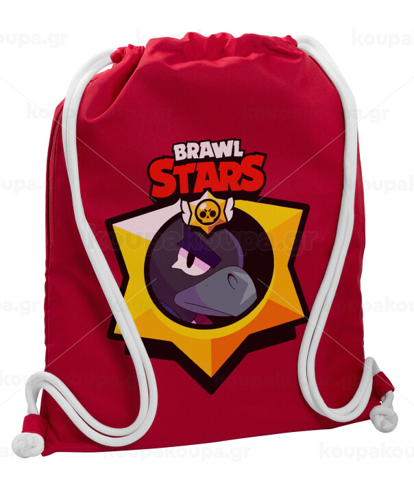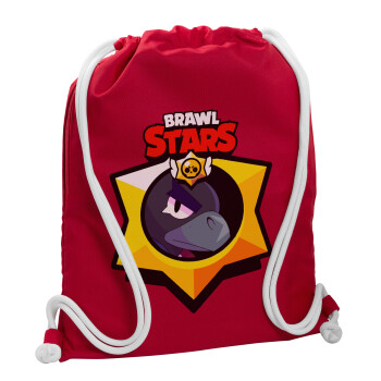 Brawl Stars Crow, Backpack pouch GYMBAG Red, with pocket (40x48cm) & thick cords