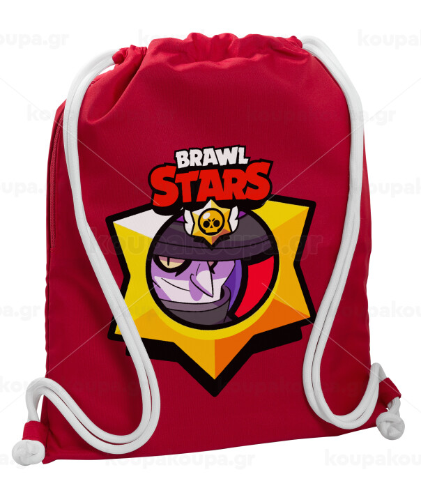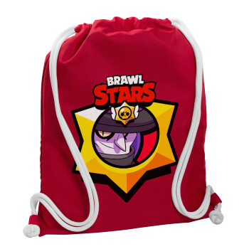 Brawl Stars Mortis, Backpack pouch GYMBAG Red, with pocket (40x48cm) & thick cords