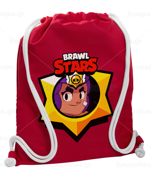 Brawl Stars Shelly, Backpack pouch GYMBAG Red, with pocket (40x48cm) & thick cords