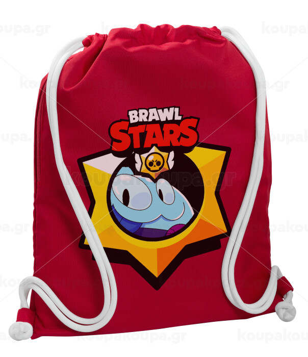 Brawl Stars Squeak, Backpack pouch GYMBAG Red, with pocket (40x48cm) & thick cords