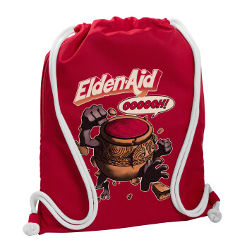 Elden-Aid, Elden Ring inspired , Backpack pouch GYMBAG Red, with pocket (40x48cm) & thick cords