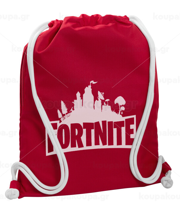 Fortnite, Backpack pouch GYMBAG Red, with pocket (40x48cm) & thick cords