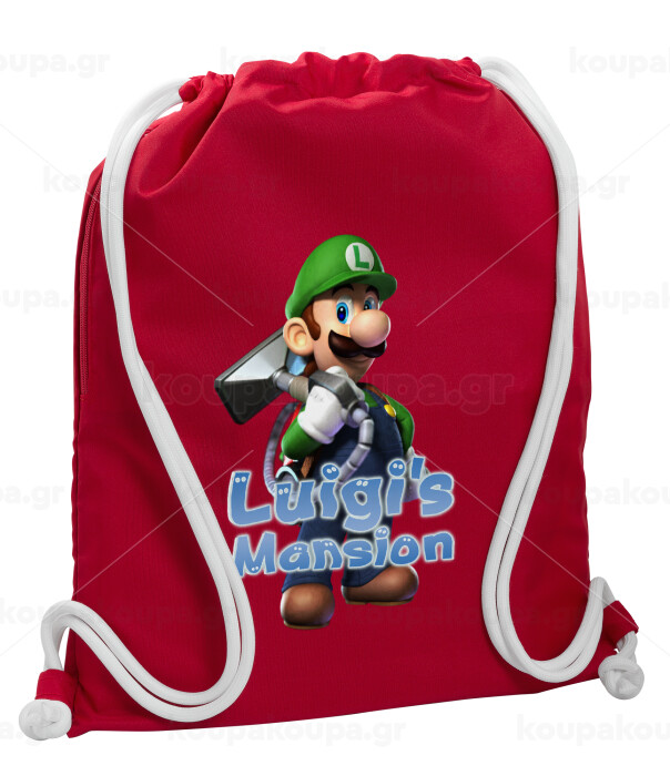 Luigi's Mansion, Backpack pouch GYMBAG Red, with pocket (40x48cm) & thick cords