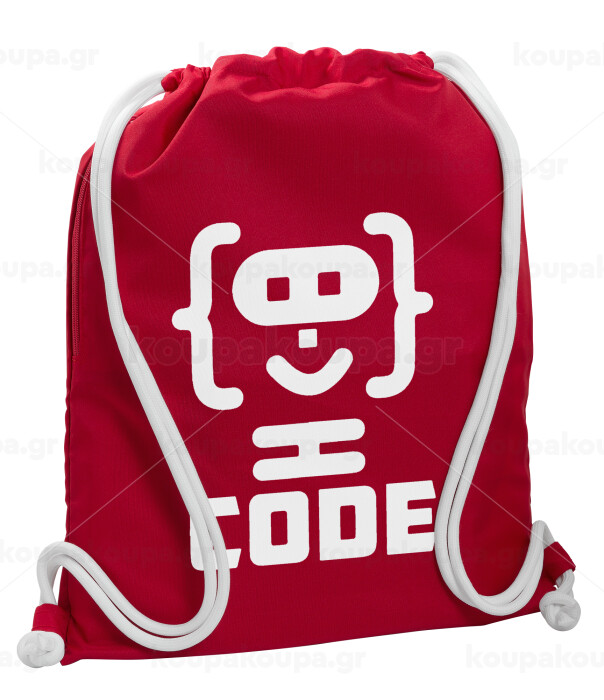 Code Heroes symbol, Backpack pouch GYMBAG Red, with pocket (40x48cm) & thick cords