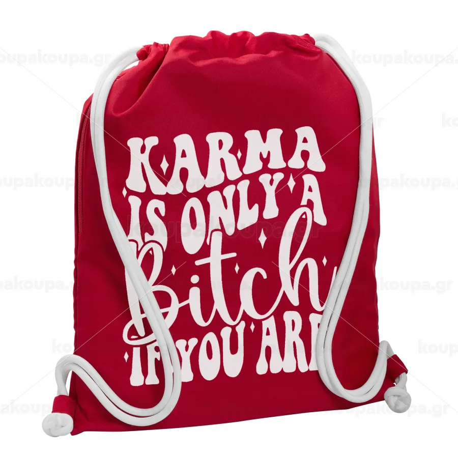 Karma is Only A Bitch if You Are, Backpack pouch GYMBAG Red, with pocket (40x48cm) & thick cords
