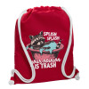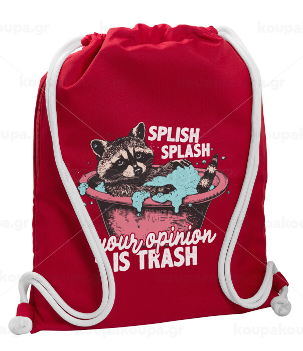 Splish splash your opinion is trash, Backpack pouch GYMBAG Red, with pocket (40x48cm) & thick cords