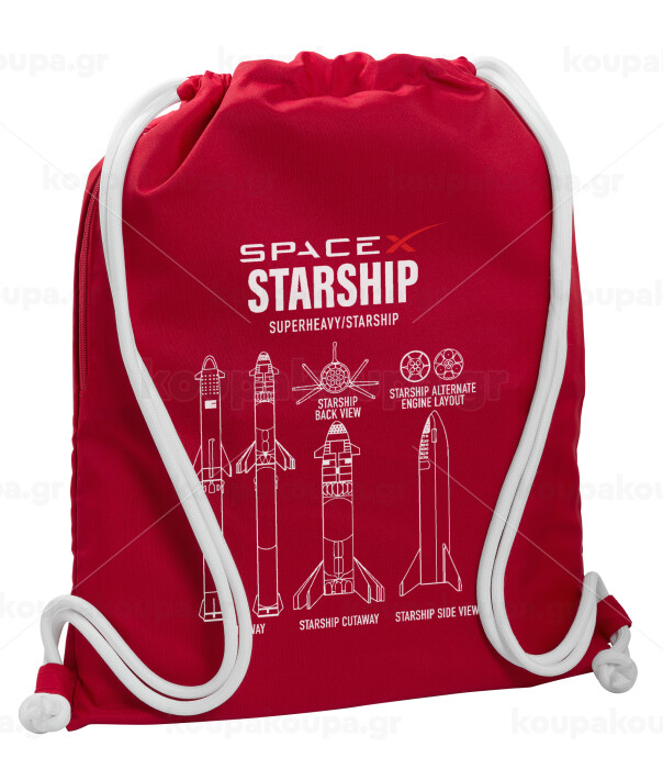 Space X, Backpack pouch GYMBAG Red, with pocket (40x48cm) & thick cords