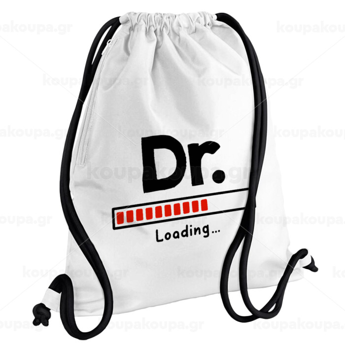 DR. Loading..., Backpack pouch GYMBAG white, with pocket (40x48cm) & thick cords