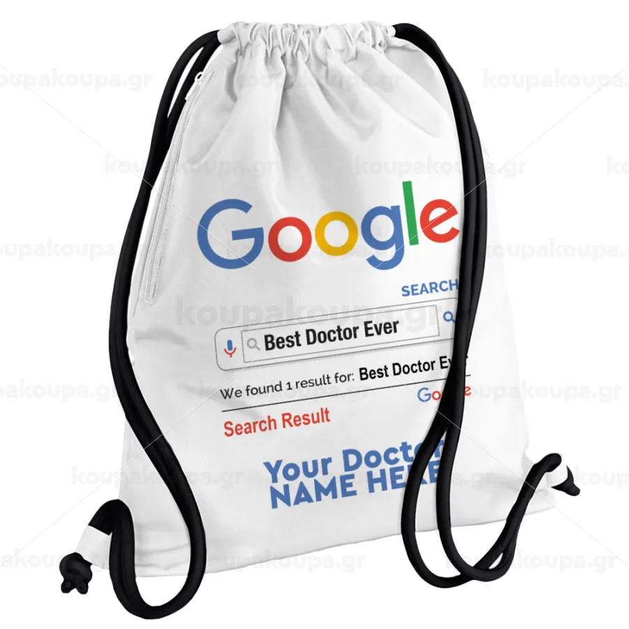 Searching for Best Doctor Ever..., Backpack pouch GYMBAG white, with pocket (40x48cm) & thick cords