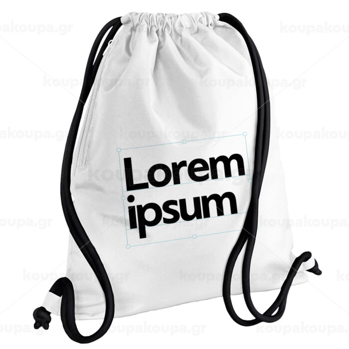 Lorem ipsum, Backpack pouch GYMBAG white, with pocket (40x48cm) & thick cords