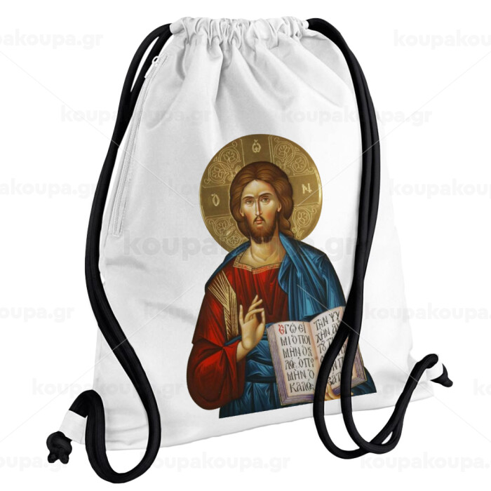 Jesus, Backpack pouch GYMBAG white, with pocket (40x48cm) & thick cords