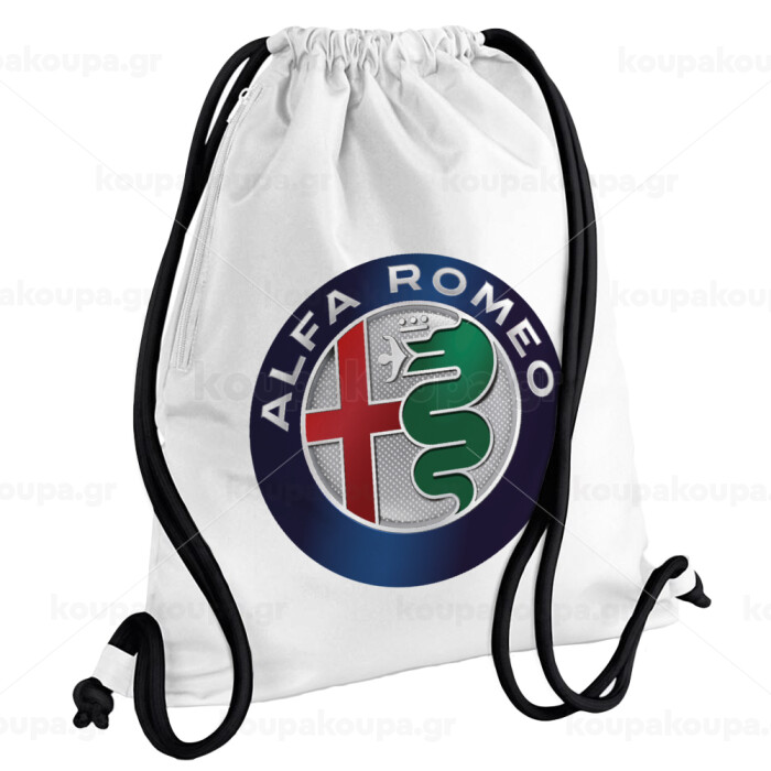 Alfa Romeo, Backpack pouch GYMBAG white, with pocket (40x48cm) & thick cords