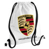 Porsche, Backpack pouch GYMBAG white, with pocket (40x48cm) & thick cords