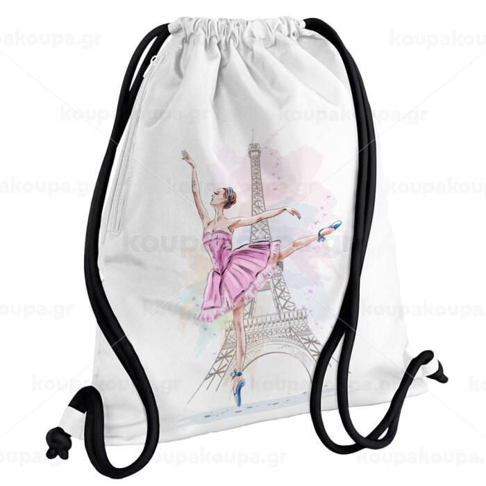 Ballerina in Paris, Backpack pouch GYMBAG white, with pocket (40x48cm) & thick cords