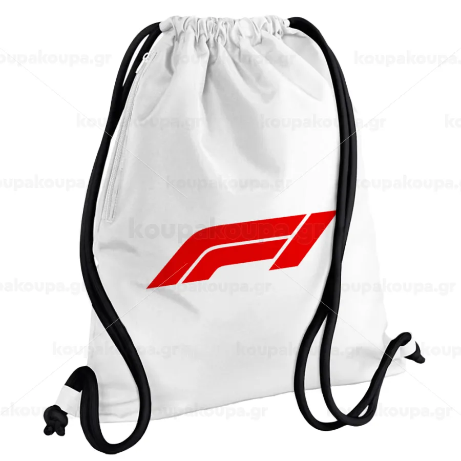 Formula 1, Backpack pouch GYMBAG white, with pocket (40x48cm) & thick cords