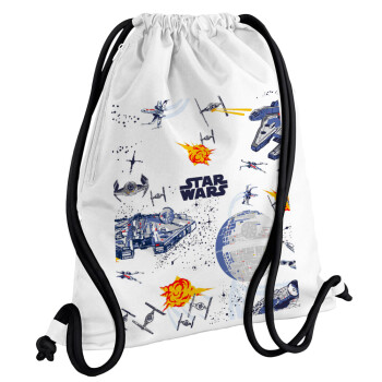 Star wars drawing, Backpack pouch GYMBAG white, with pocket (40x48cm) & thick cords