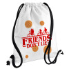 Friends Don't Lie, Stranger Things, Backpack pouch GYMBAG white, with pocket (40x48cm) & thick cords