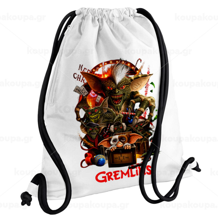 Gremlins, Backpack pouch GYMBAG white, with pocket (40x48cm) & thick cords