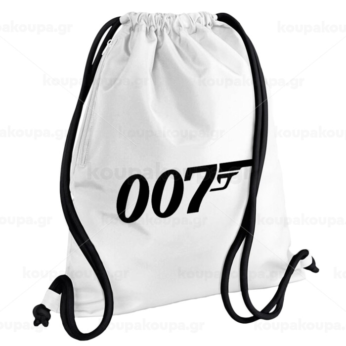 James Bond 007, Backpack pouch GYMBAG white, with pocket (40x48cm) & thick cords