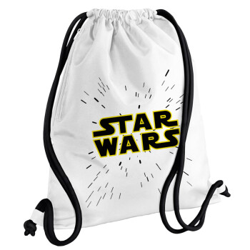 Star Wars, Backpack pouch GYMBAG white, with pocket (40x48cm) & thick cords