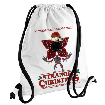 Stranger Things Christmas, Backpack pouch GYMBAG white, with pocket (40x48cm) & thick cords