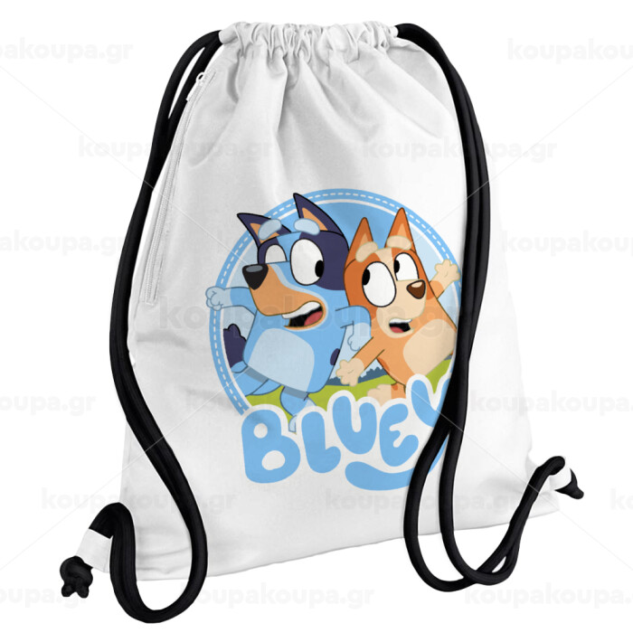Μπλε, Backpack pouch GYMBAG white, with pocket (40x48cm) & thick cords